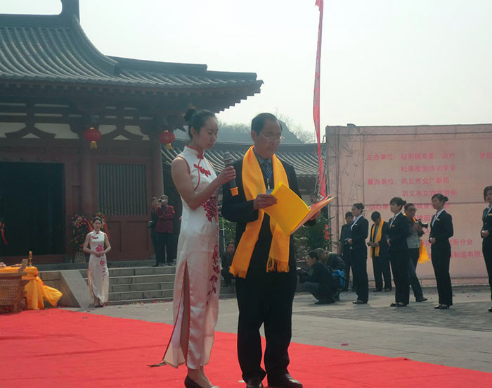 由鞏義市杜甫詩詞學(xué)會發(fā)起,杜甫故里和杜甫陵園協(xié)辦?;顒又卦诰拺咽ベt、弘揚(yáng)文化,活動有祭祀上香、宣讀祭文、吟唱頌歌、樂舞敬拜、陵園掃墓等議程組成,屆時將會由來自省、市的各界領(lǐng)導(dǎo),及各類杜甫研究機(jī)構(gòu)、杜氏宗親及我市的大中小學(xué)生等數(shù)千名人員參加祭拜詩圣活動。由我河南省杜甫機(jī)械有限公司主辦并贊助的大型拜祭大典大概在十一點(diǎn)圓滿結(jié)束,此意義重大而深遠(yuǎn)。